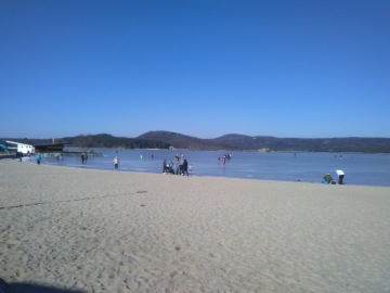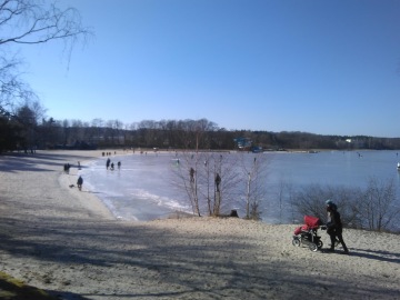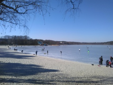Mrazivé počasí posledních dní vytvořilo na Máchově jezeře u hlavní pláže v Doksech led o síle 14 cm. Několik prvních odvážlivců se o tomto víkendu rozhodlo led vyzkoušet, měli k tomu i krásné slunečné počasí. Máchovo jezero není zamrzlé celé nebo je síla ledu nedostatečná. Dbejte proto zvýšené opatrnosti. Bruslení je na vlastní nebezpečí.
