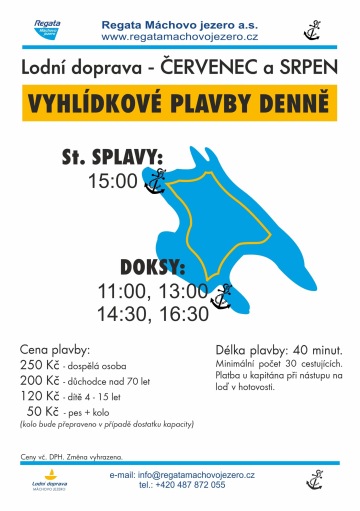 od pondělí, 30. června bude zahájen provoz pravidelných plavbeb po Máchově jezeře.