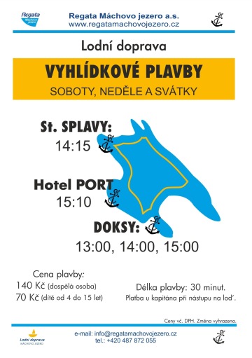 Z přístaviště v Doksech vyplouváme v časech: 13:00, 14:00 a 15:00 hodin
